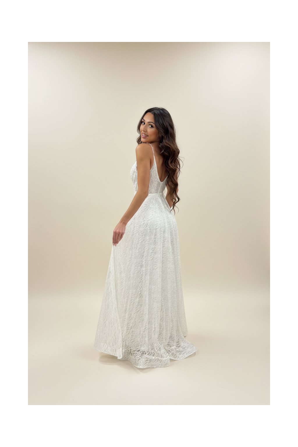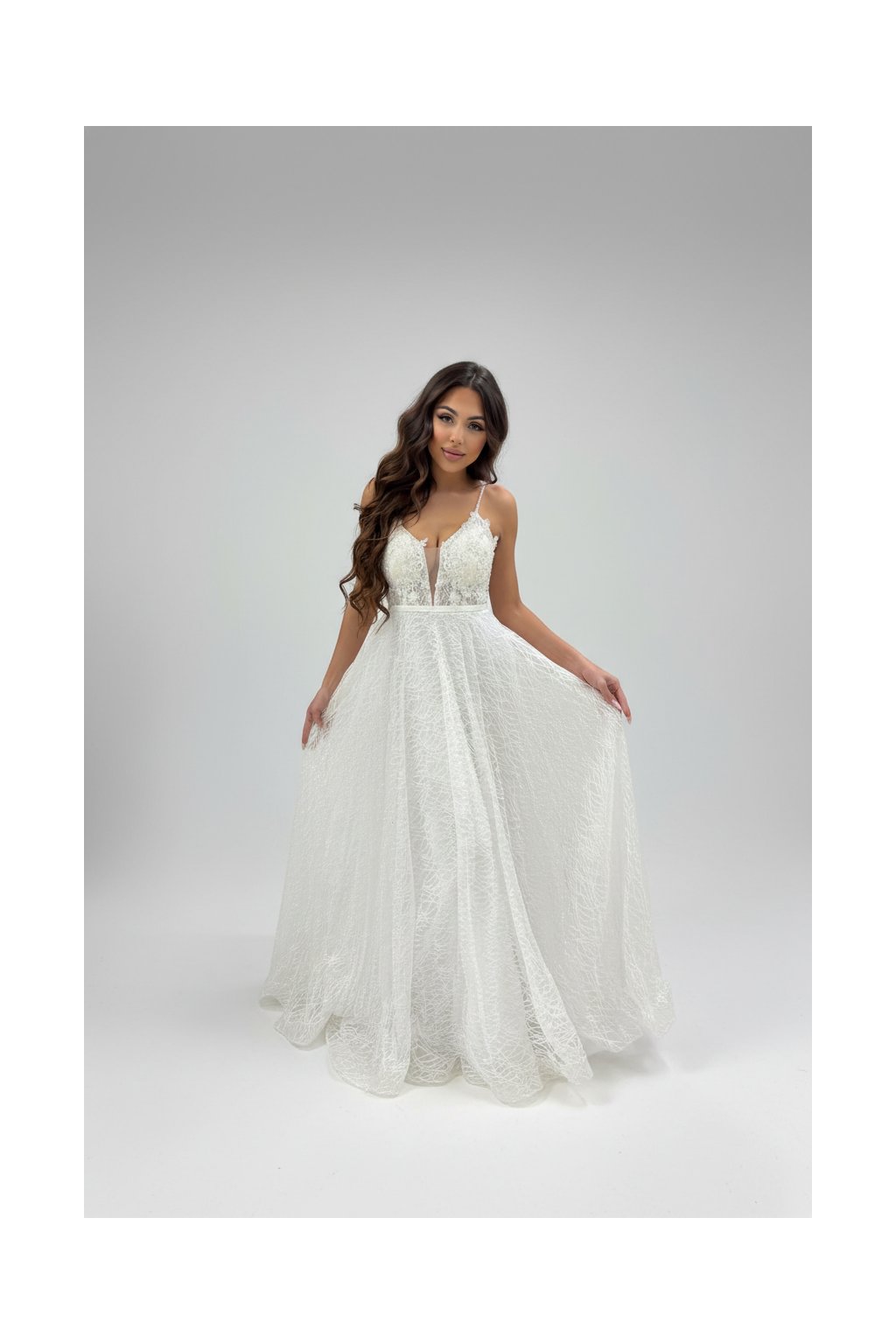 - Detaily: Šaty mají krajkový živůtek s jemnými aplikacemi, které dodávají romantický vzhled.