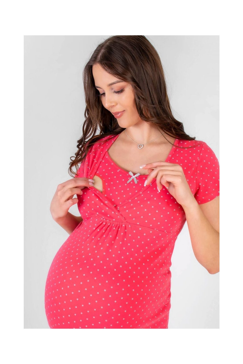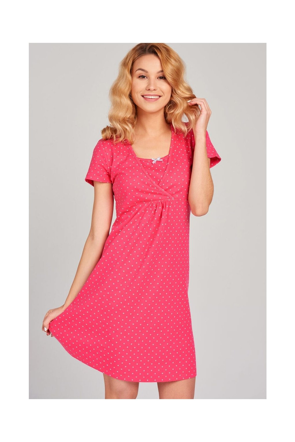 Dámská kojící noční košile značky Muzzy model puntík v růžové barvě