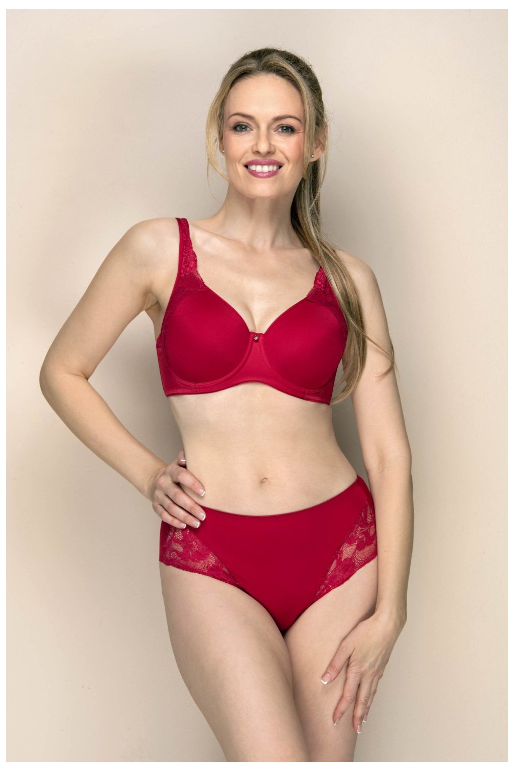 Nechte se očarovat jedinečným střihem oblíbené podprsenky DreamBra z kolekce Moulin Rouge. Elegantní rudě červená krajka krásně doplní bezešvý koš podprsenky ve stejné barvě. Vysoký střed navíc poprsí krásně vytvaruje.